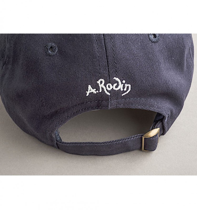 Casquette bleue unisexe brodée avec une citation de Rodin "La beauté est partout".